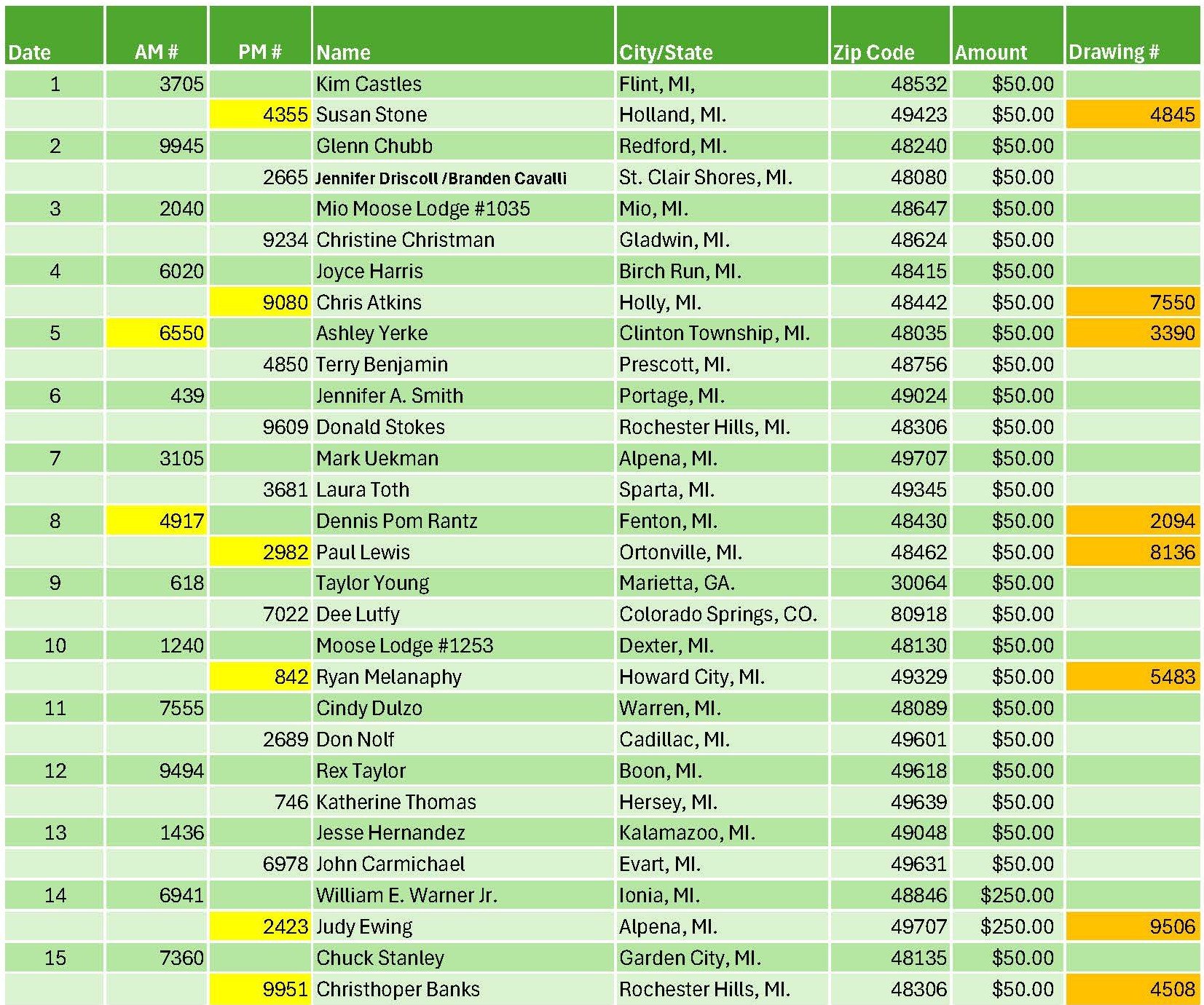 Raffle Results 2025